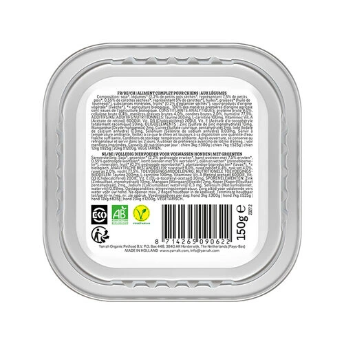 Yarrah’s Hundefutter Bröckchen Vega mit Hagebutten sind 100%ig biologische Stücke in Soße für den erwachsenen Hund.